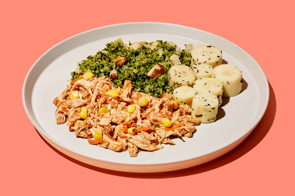 Um toque indiano e ingredientes brasileiros de raiz dão sabor e originalidade a esse frango criado pela Liv Up e entregue em sua casa para aqueles dias em que você quer sair um pouco da rotina. Cubos de peito de frango sem nenhum tipo de antibiótico ganham brilho com o molho de curry e cúrcuma (que também é chamada de açafrão da terra), temperado com cebola orgânica, alho, salsinha orgânica, pimenta-do-reino e sal. O arroz de brócolis com castanha do Pará, o palmito pupunha assado com azeite extravirgem, alho, sal e tomilho dão um toque ainda mais especial. Huuummm…