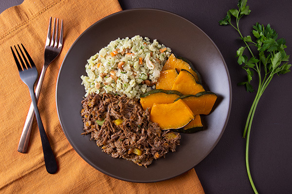 Criatividade não falta nos pratos por aqui. Ou vai dizer que você já pensou em comer carne louca com abóbora e arroz de couve flor? A ousadia é totalmente justificada, tanto pelo teor nutricional da refeição quanto pelo sabor: o tempero marcante da carne faz uma dupla bem harmônica com a doçura da abóbora, e o crocante da castanha de caju chega pra dar aquele toque final de surpresa e satisfação.