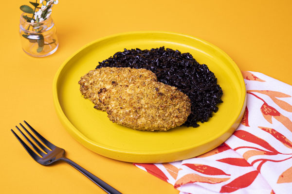 É pra sair da mesmice com dois clássicos impossíveis de não amar: frango e arroz. Nossa crosta de amendoim faz bonito, ainda mais combinada com um toque de lemon pepper. O arroz negro vem pra acrescentar sabor e mais nutrientes na sua refeição, uma ótima opção pra variar o arroz branco.