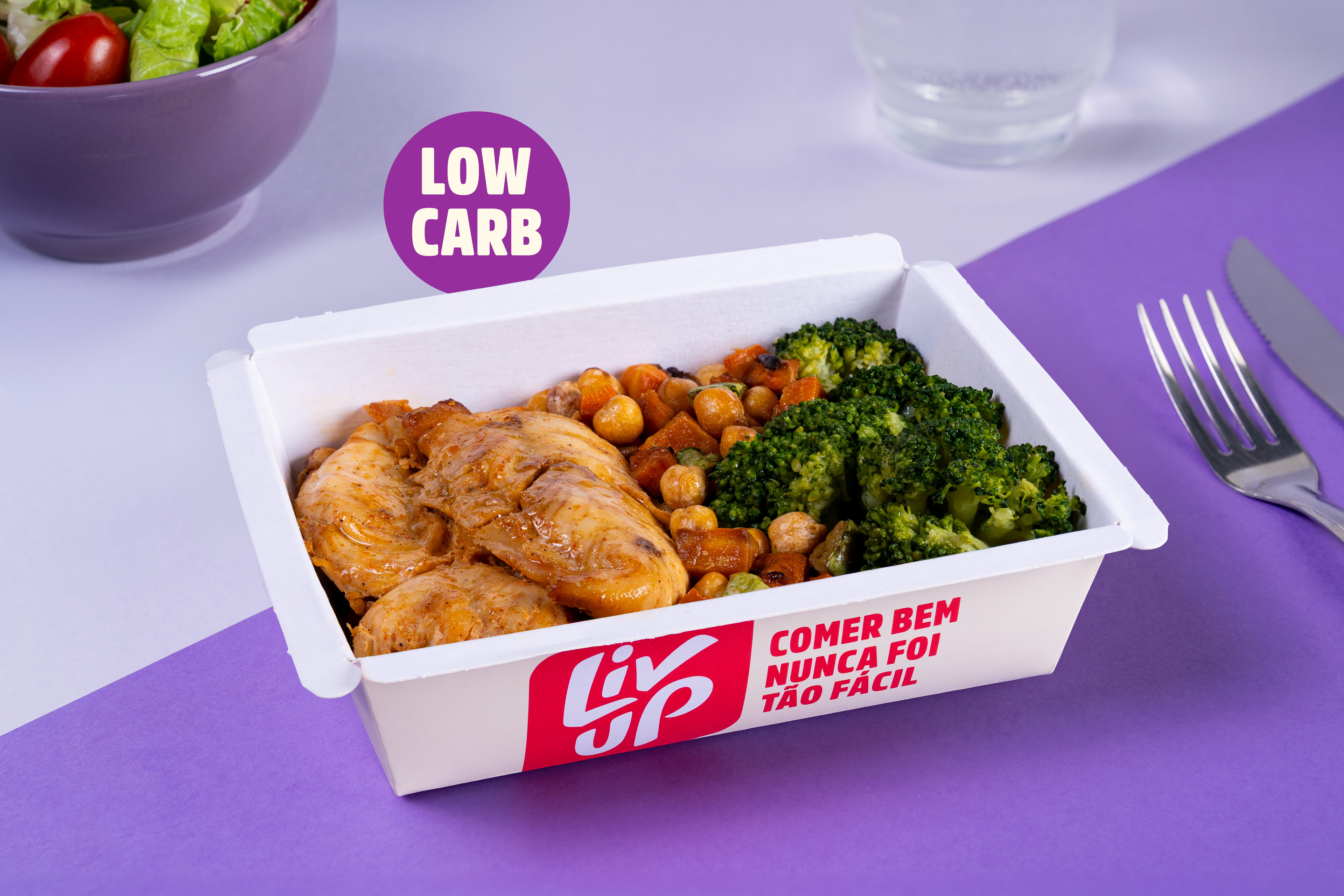 Uma opção leve, com baixo teor de carboidratos: nosso frango bem temperadinho com um toque de limão siciliano, acompanhado de grão de bico com legumes e brócolis cozidos no ponto certo.