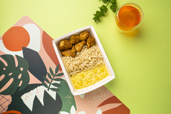 Frango grelhado, arroz e creme de milho - 450g: