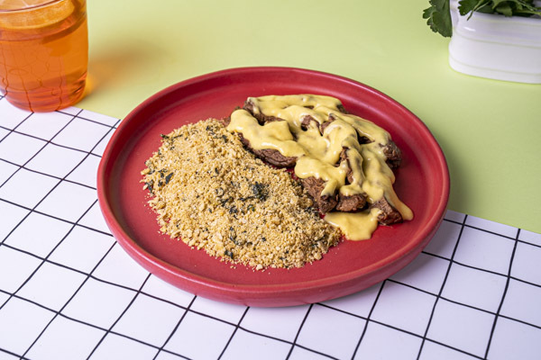 Nesta combinação surpreendente, o clássico da cozinha francesa ganha a companhia da sensacional Farofa de Couve, que é uma opção deliciosa para adicionar sabor e crocância à sua comida. O Filé mignon macio e saboroso, com molho de mostarda amarela e creme de leite sem lactose, junto com essa farofa soltinha, compõem a escolha ideal para uma refeição simples, porém requintada.