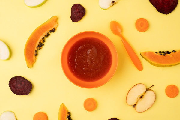 Papinha infantil 6m+ com maçã, mamão, cenoura e beterraba: