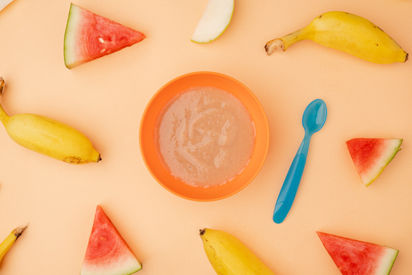 Papinha infantil 6m+ com melancia, banana e maçã: