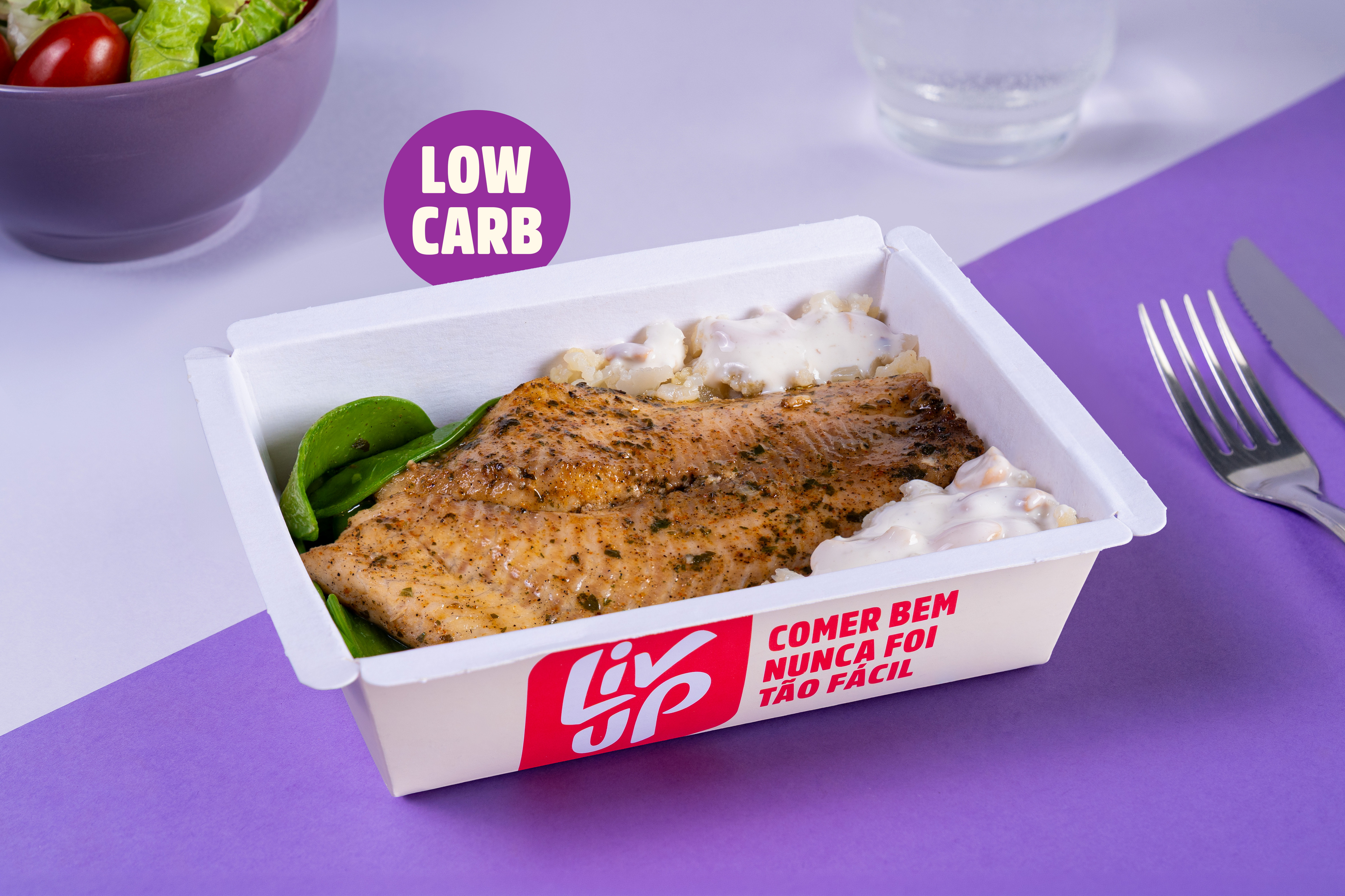 Uma opção leve, com baixo teor de carboidratos: nosso saint peter bem temperadinho, acompanhado de um risoto de couve-flor leve e cremoso e ervilha torta crocante.