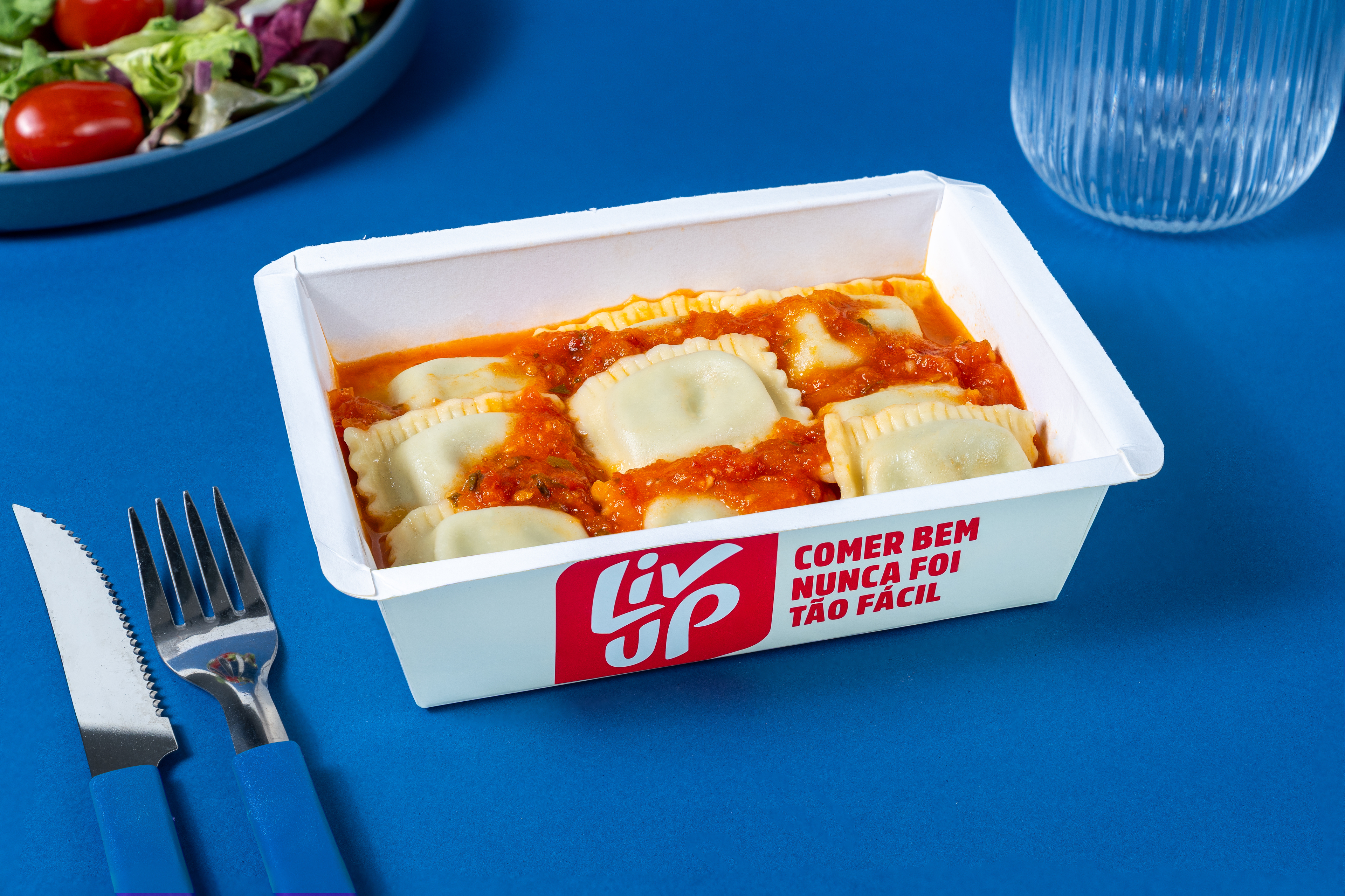 Nosso ravioli recheado com ricota e espinafre é envolvido em um molho de tomate fresco e saboroso. Um prato clássico da culinária italiana, perfeito pra qualquer momento da semana!