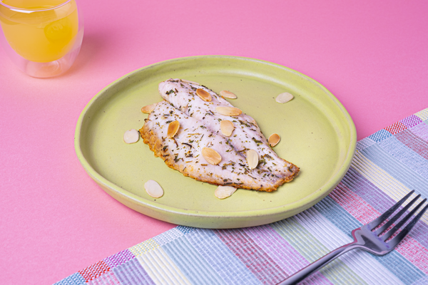 filé de saint peter, amêndoa laminada, azeite extra virgem, sal, ervas finas (manjericão, salsa, tomilho, cebolinha e manjerona).