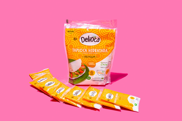 A delioca Da Terrinha é a tapioca brasileira autêntica, natural e versátil, produzida só com a pura fécula de mandioca e água, vegana e sem conservantes. Vem numa prática embalagem com sete porções, uma pra cada dia da semana, para evitar o desperdício. E não precisa peneirar, é só cozinhar na frigideira com seu recheio preferido. Hmmm!